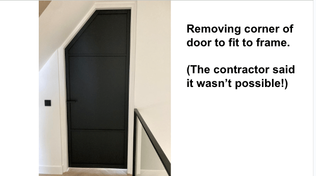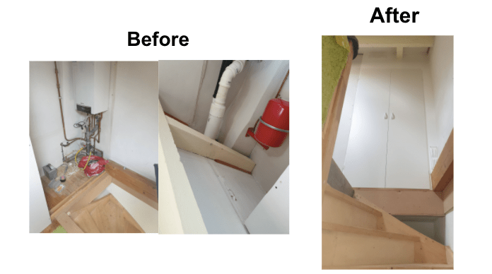 Building and installation of custom made cupboard to cover central heating boilerHanging up restaurant sign and logo (individual letters)Installation of new shed roofDesign and creation of window frame, window and iron grill.Installation of window frame, window and iron grill.